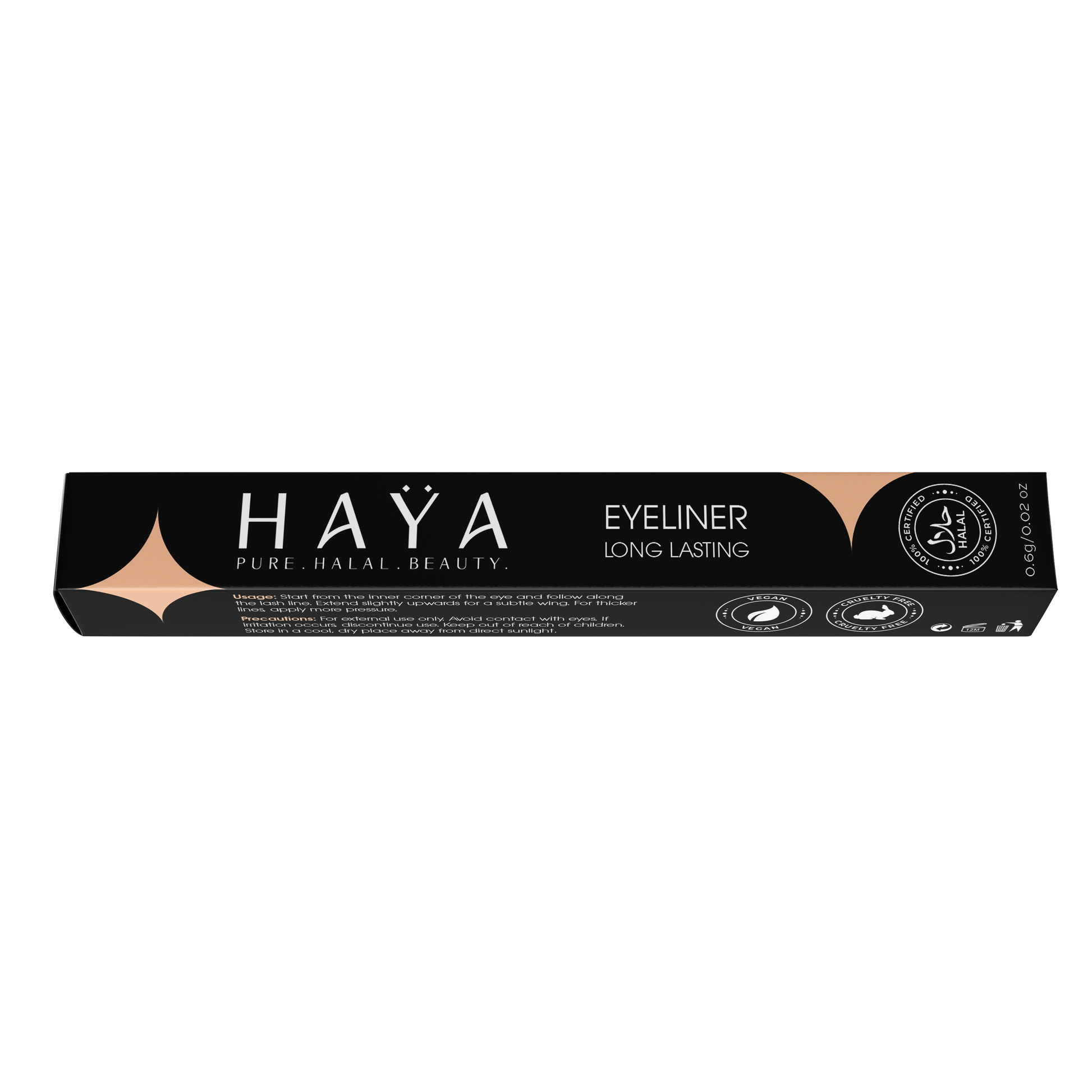 - Haya Long-Lasting Eyeliner: Define your look with a slim tip for precision and rich black pigment. Its resilient, waterproof formula delivers bold, captivating lines that stay perfectly intact throughout the day.