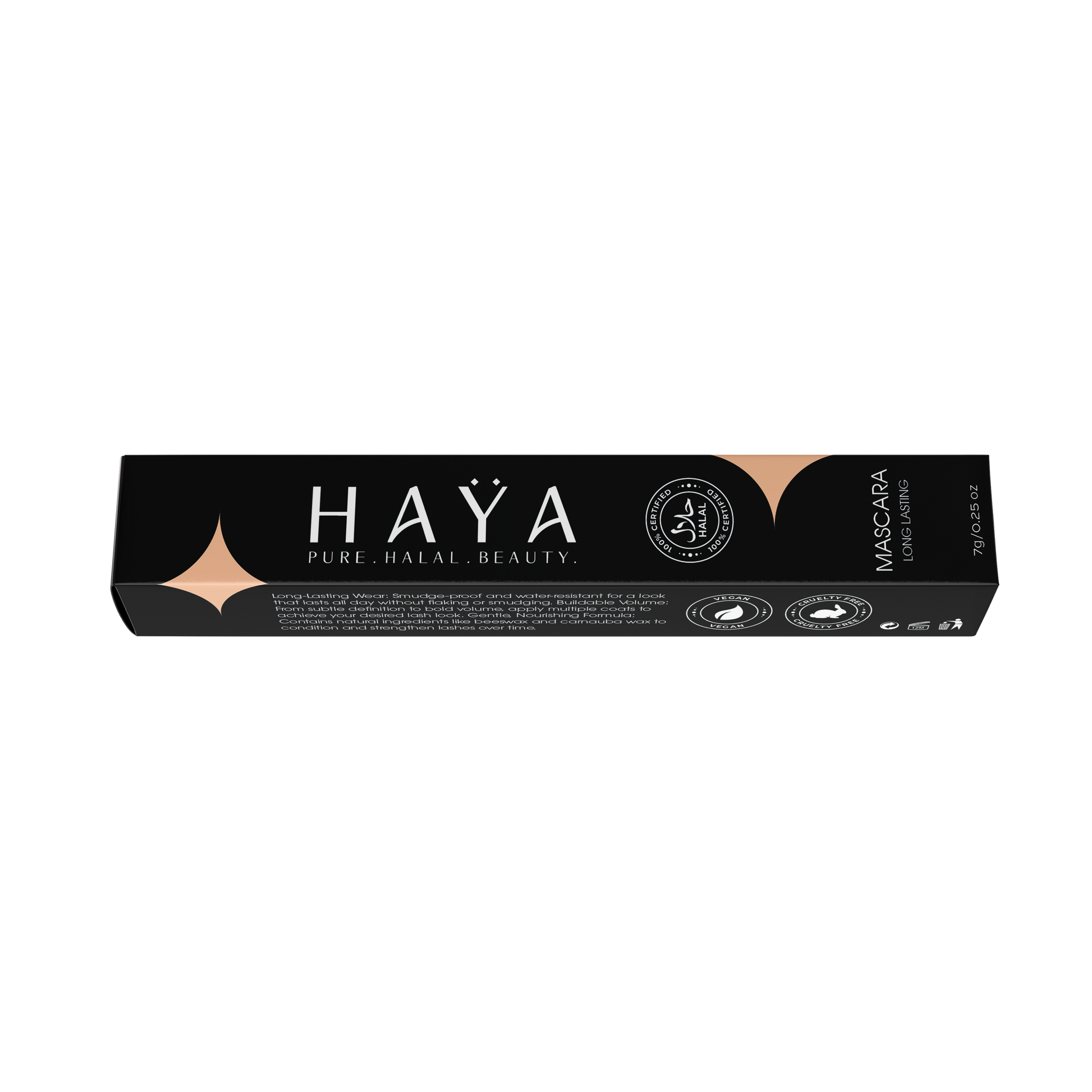 - HAYA Long-Lasting Mascara: Achieve striking lashes with smudge-proof and water-resistant volume. The nourishing formula allows for buildable volume and length, ensuring a seamless look with no flaking or clumps.