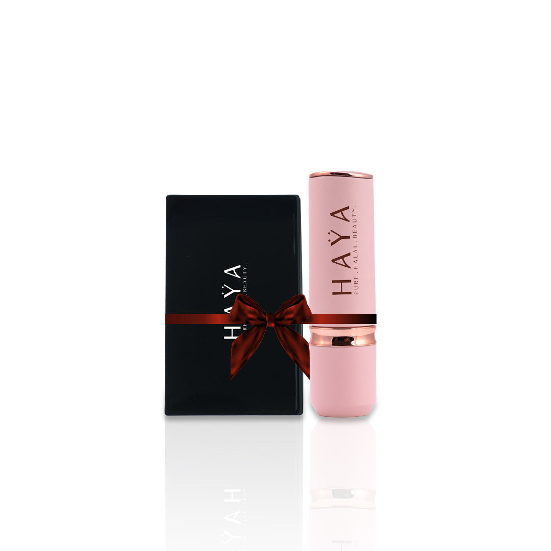 - HAYA Velvet Matte Lipstick: Define your pout with a luxurious, soft matte finish that feels lightweight and non-drying. This waterproof lipstick delivers rich, fade-resistant color and is infused with Macadamia and Sweet Cherry Seed Oils to keep lips smooth, hydrated, and comfortable.